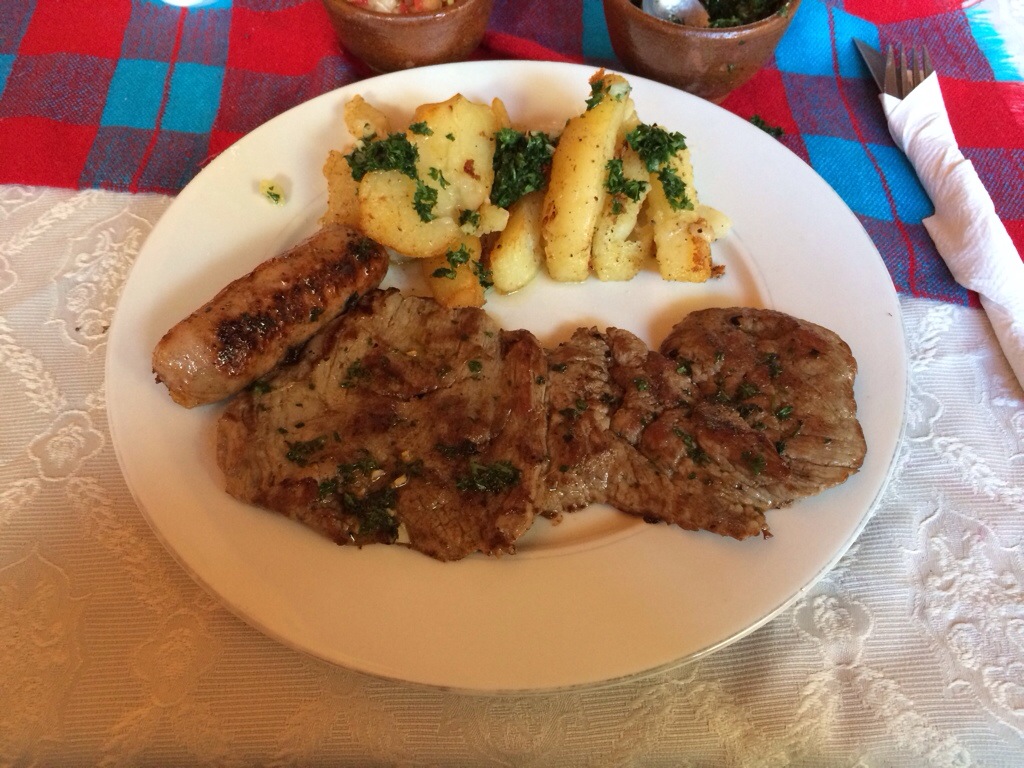 Grilled beef and sausage with chimichurri and fried potatoes Copán, Honduras Share this: Share on X (Opens in new window) X Share on Facebook (Opens in new window) Facebook Like Loading...
