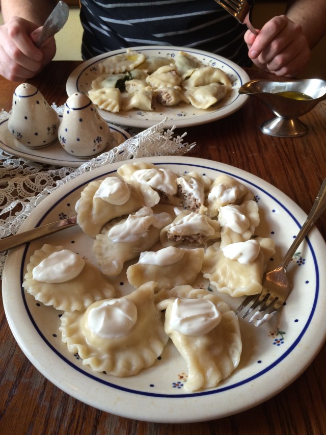 Warsaw food Pierogies Stew in a bread bowl Sausages Hotel breakfast Dumpling soup Pancakes with ham and cheese (and dull butter) Roasted duck with apple and cranberry Roasted rabbit in cream sauce Share this: Share on X (Opens in new window) X Share on Facebook (Opens in new window) Facebook Like Loading...