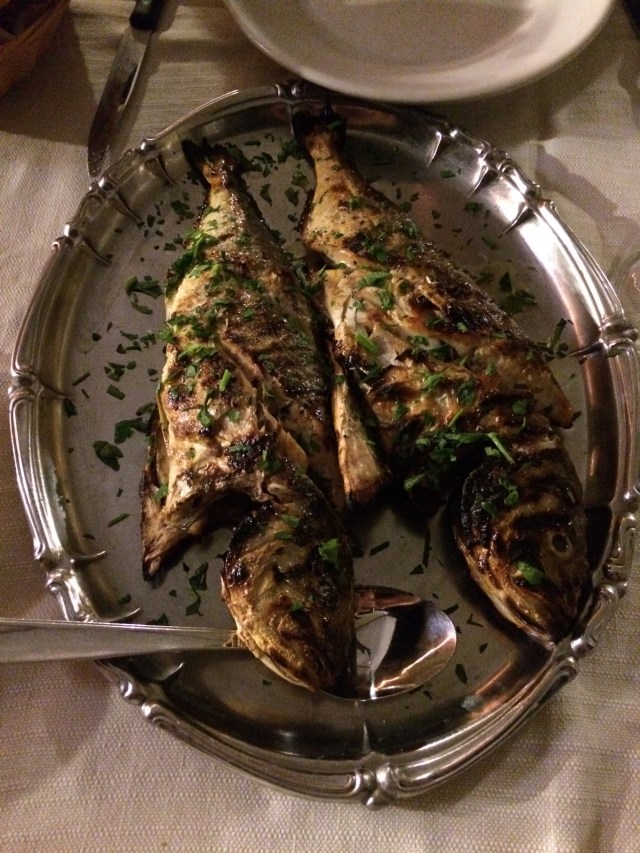 Dinner in Siracusa (day 2): large bowl of deep fried shrimp, squid, and sardines; mystery fish grilled whole Share this: Click to share on X (Opens in new window) X Click to share on Facebook (Opens in new window) Facebook Like Loading...