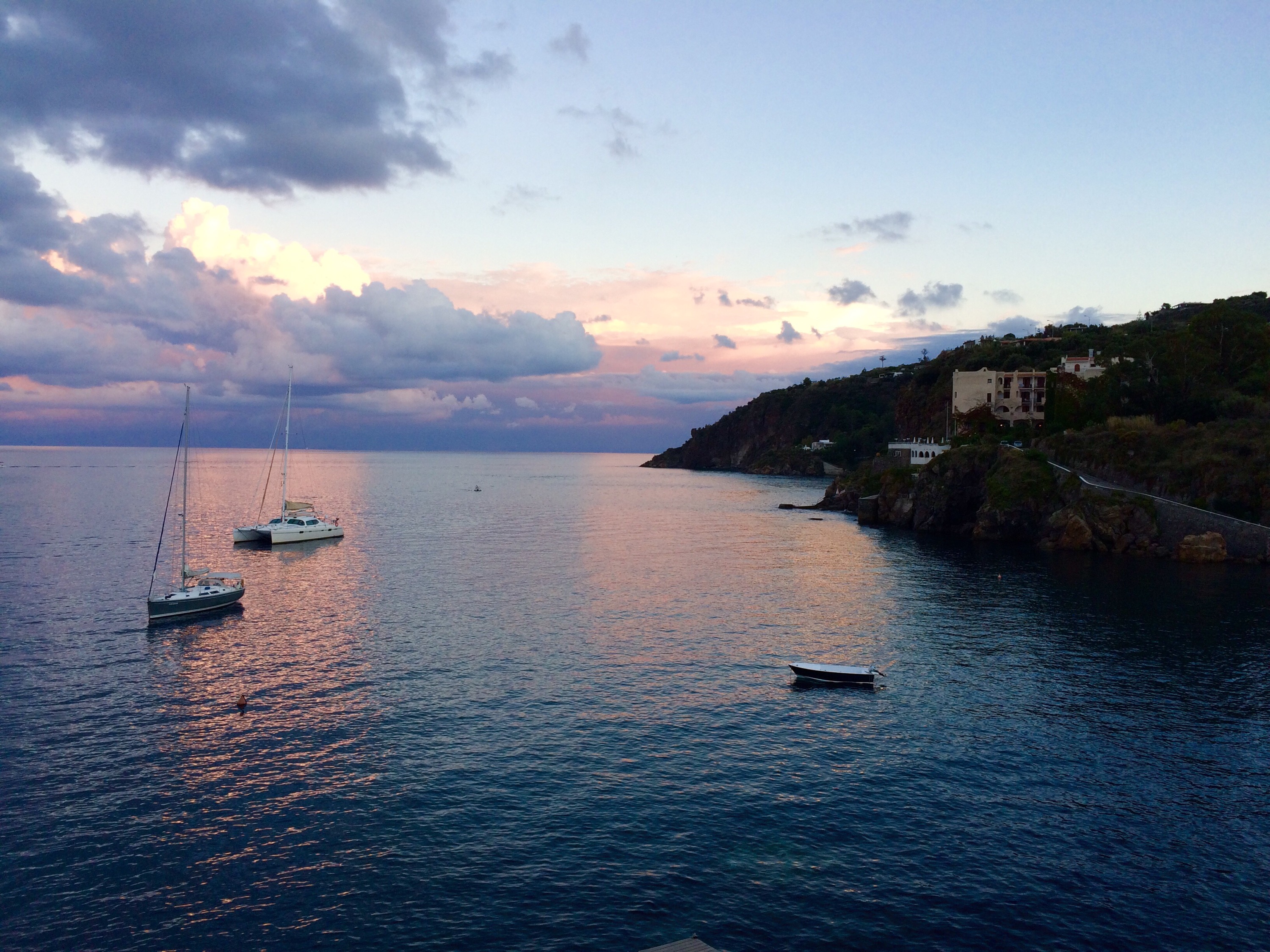 Orange risotto with shrimp; grilled sea bass; breaded swordfish; cannoli. Lipari (Aeolian Islands)