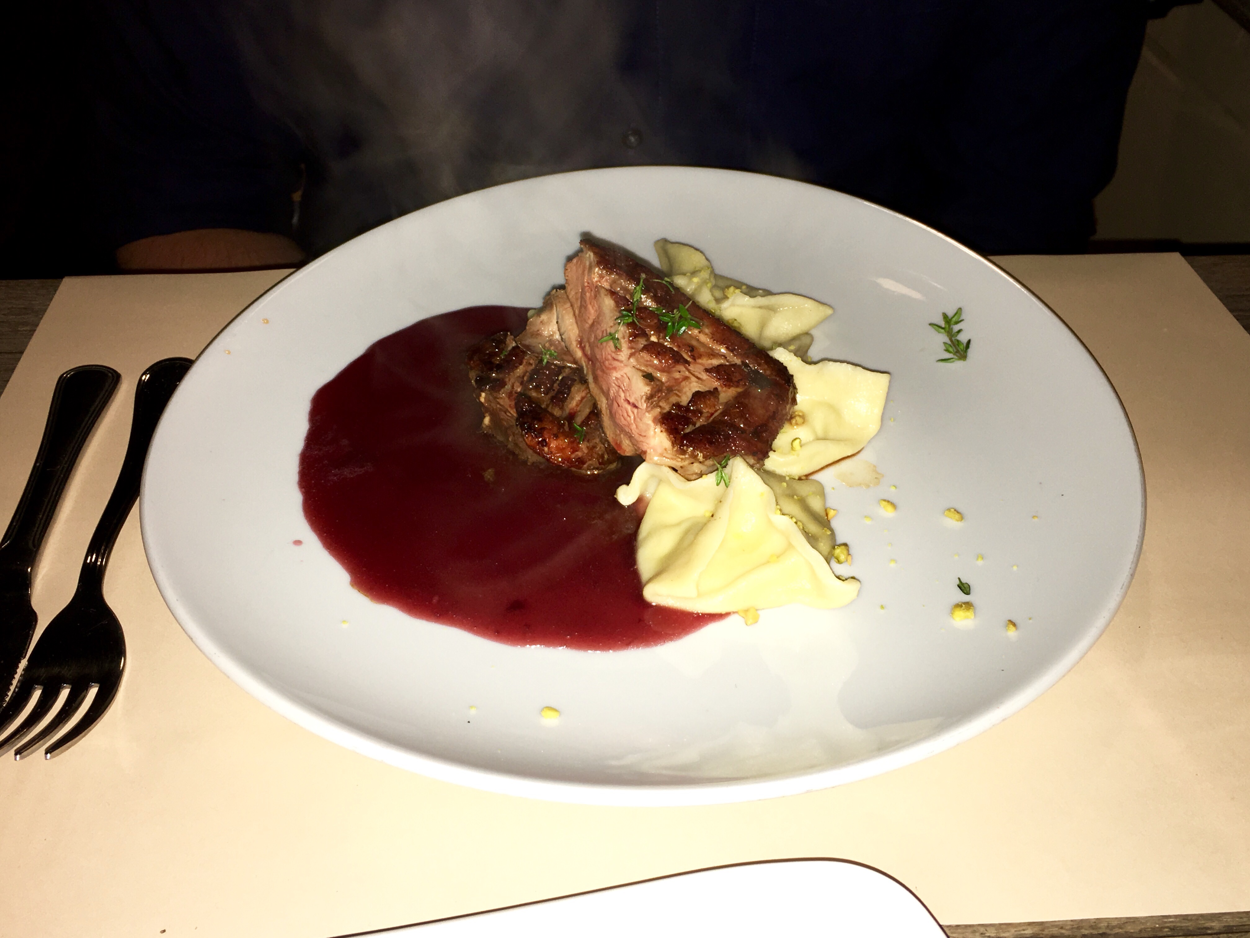 Food in Ljubljana, Slovenia (day 2): suckling pig grilled over charcoal with red pepper purée, leek, and mashed potatoes; duck breast in plum sauce with pistachio ravioli; fried calamari at the central market Share this: Click to share on X (Opens in new window) X Click to share on Facebook (Opens in new window) Facebook Like Loading...