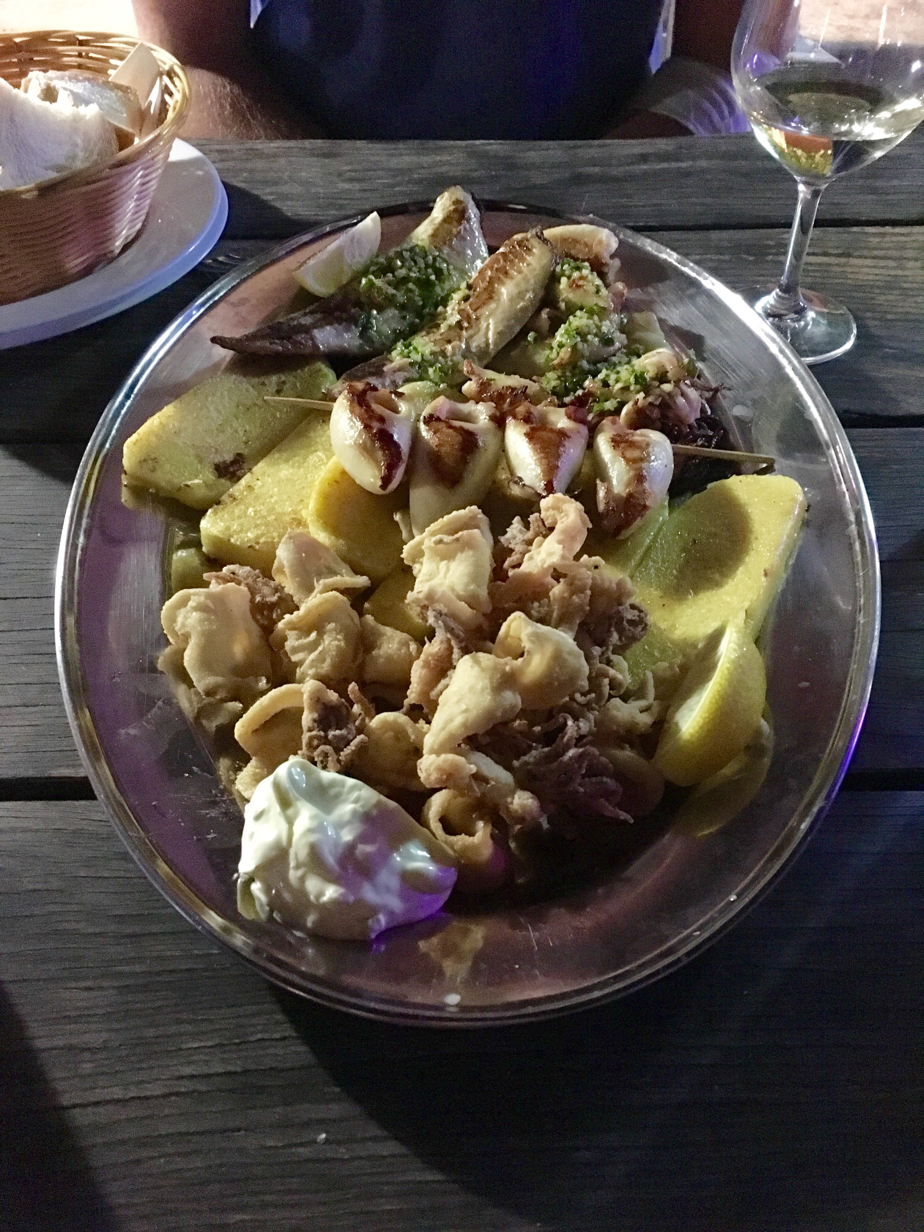 Food in Slovenia (day 3): grilled trout with garlic and parsley; mixed seafood platter (grilled fish fillets, grilled squid, grilled stuffed squid, fried squid, and polenta) Share this: Click to share on X (Opens in new window) X Click to share on Facebook (Opens in new window) Facebook Like Loading...
