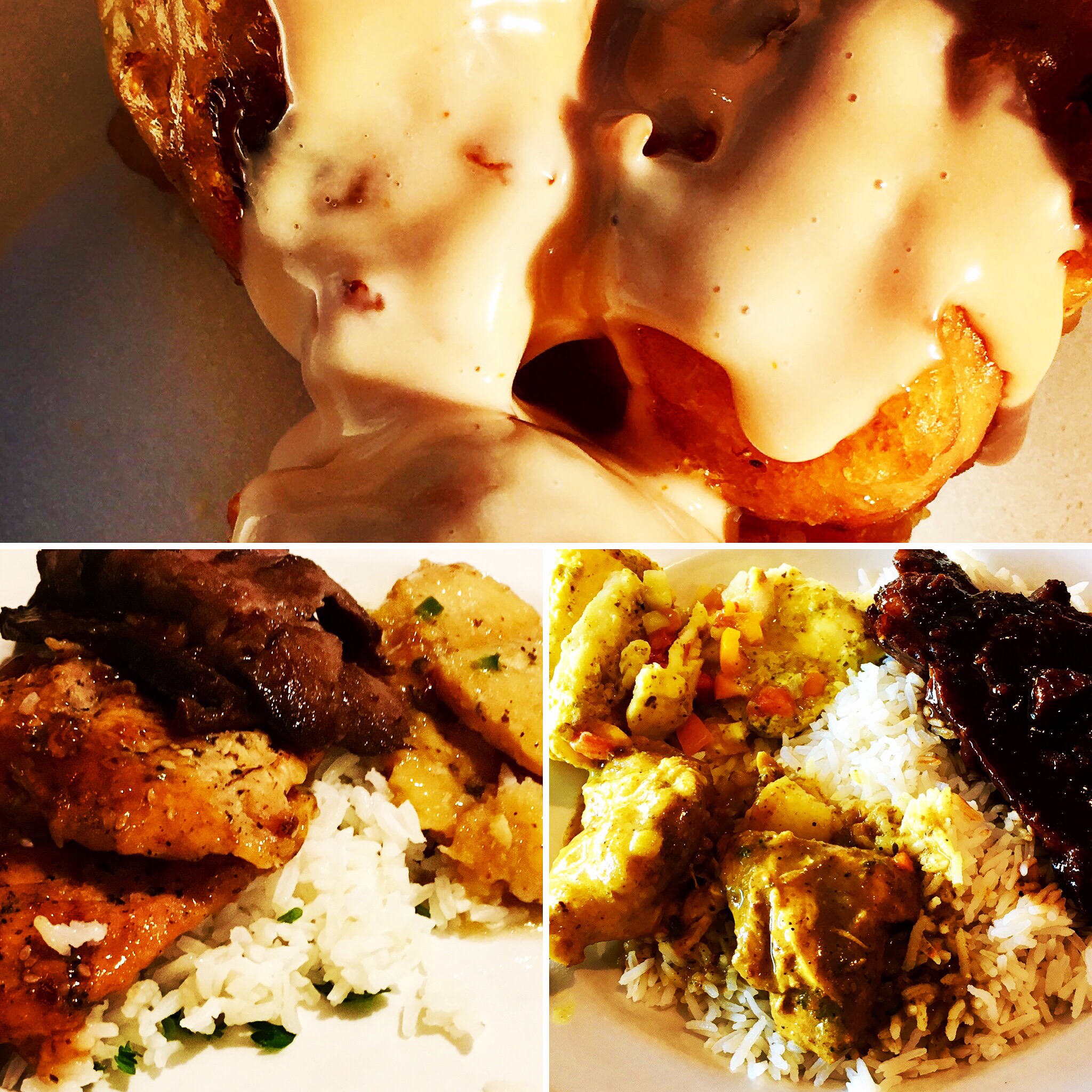 Food in Bahamas, day 1 Conch fritters; coconut lime rice, curry chicken, mustard pesto grouper, jerk pork loin; miso-glazed grouper, honey sesame grilled chicken, teriyaki roast beef Share this: Click to share on X (Opens in new window) X Click to share on Facebook (Opens in new window) Facebook Like Loading...