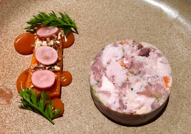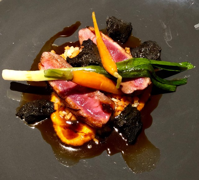 Chez Roux, East Lothian, Scotland Assorted canapés; rabbit leg and pork terrine with carrot fondant and pork crumb; duck breast with carrot, fennel, and black onion seed sponge; rhubarb sorbet. Share this: Share on X (Opens in new window) X Share on Facebook (Opens in new window) Facebook Like Loading...