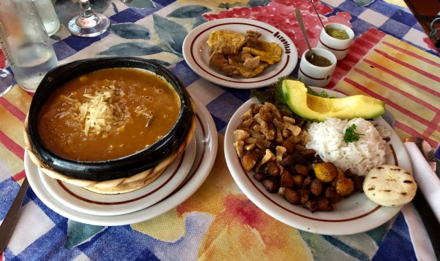 Cazuela típica (bean soup with shredded beef, sausage, and corn served with pork cracklings, sweet plantains, rice, and avocado). Hatoviejo Restaurant, Medellín, Colombia Share this: Click to share on X (Opens in new window) X Click to share on Facebook (Opens in new window) Facebook Like Loading...