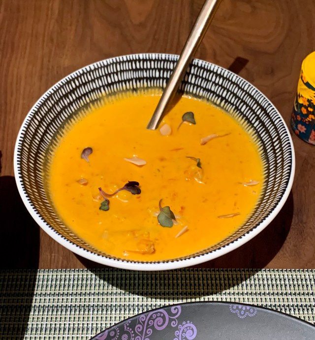 Chicken and basmati rice “snowballs ” with tangy chickpeas; coastal prawn stew with coconut, lemongrass, kaffir lime, and roasted red chilies