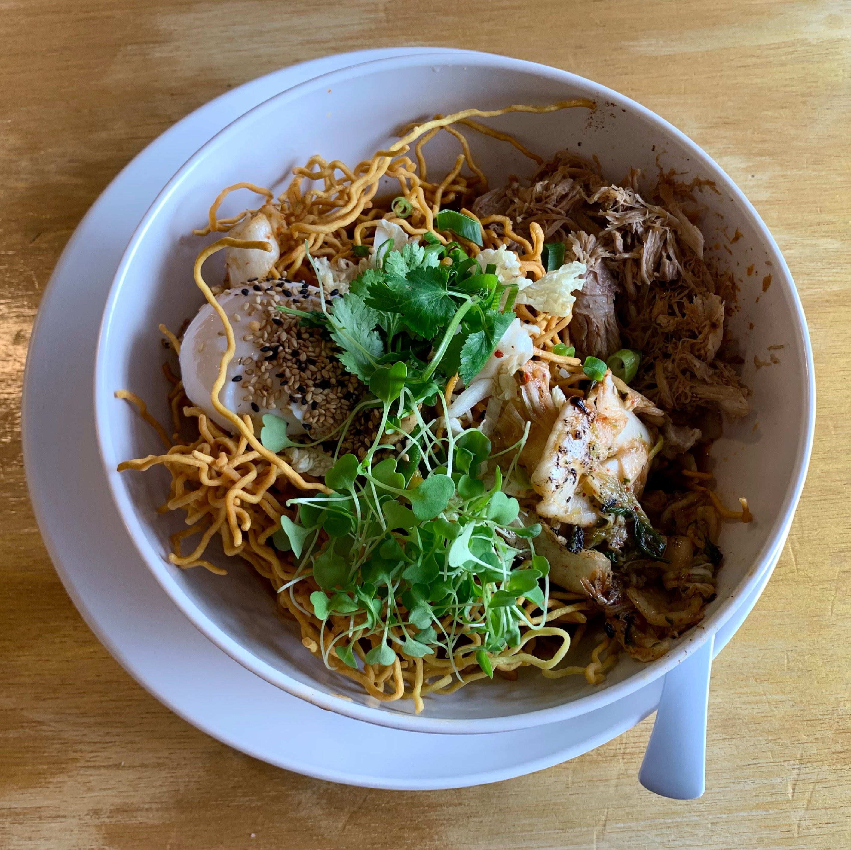 Papa’aina Restaurant, Lahaina, Maui, Hawaii Crispy ramen with kalua smoked pork, kimchi, poached egg, cabbage, green onion, and sesame shoyu broth Share this: Share on X (Opens in new window) X Share on Facebook (Opens in new window) Facebook Like Loading...