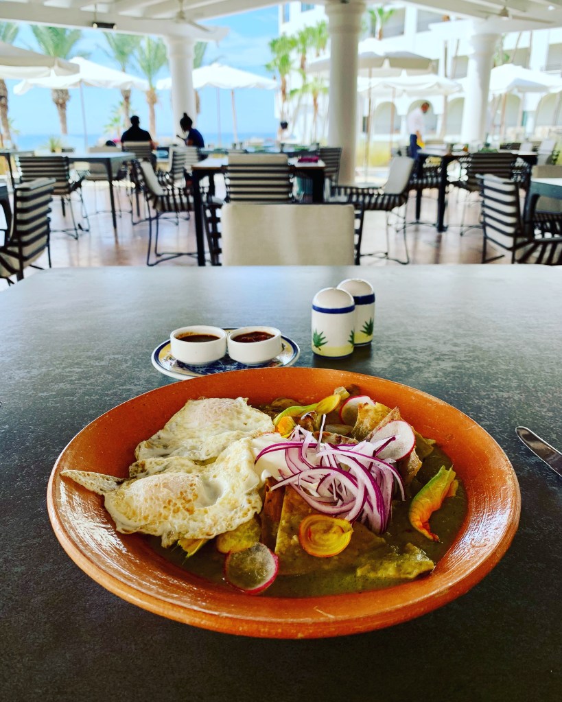 Talavera Restaurant at Hilton La Pacifica, Los Cabos, Mexico Chilaquiles verde breakfast Share this: Share on X (Opens in new window) X Share on Facebook (Opens in new window) Facebook Like Loading...