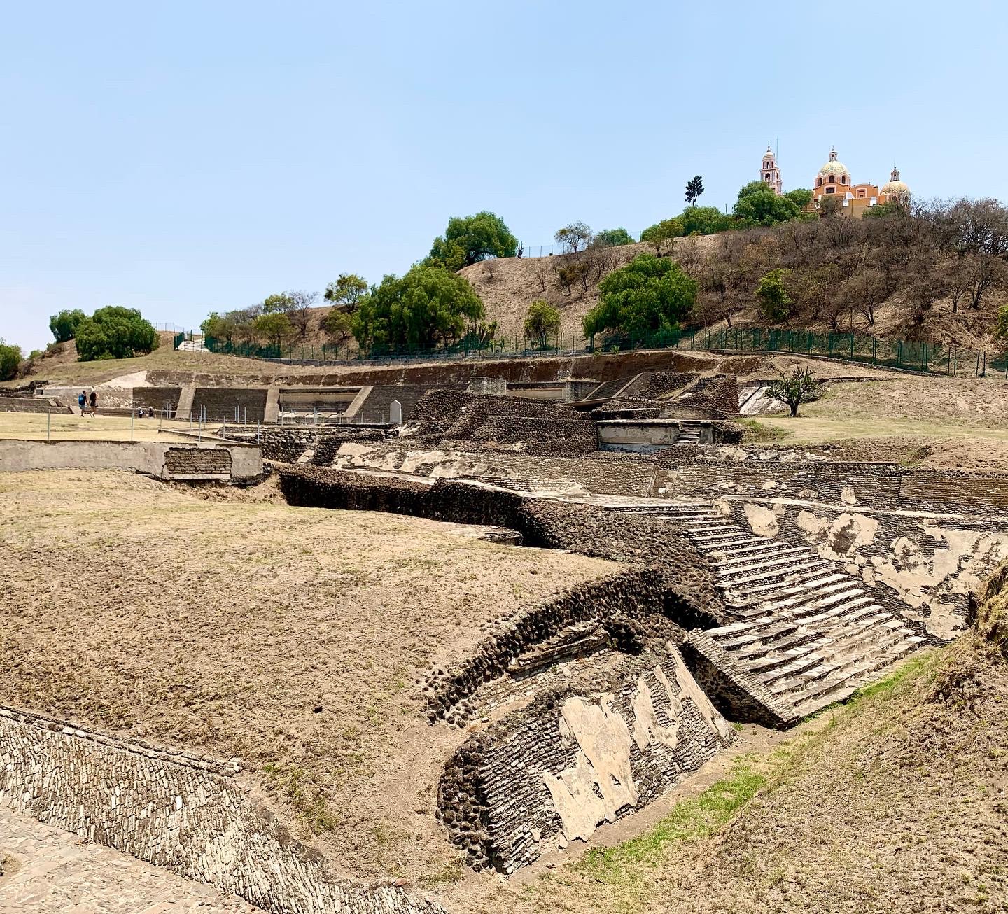 Tlachihualtepetl, the Great Pyramid of Cholula, is the world’s largest pyramid by volume and is wider at its base than the Great Pyramid of Giza. It was built in four stages between the 3rd c. BCE and the 9th c. CE. Not much remains, and of course the Spanish conquistadors built a church on top.