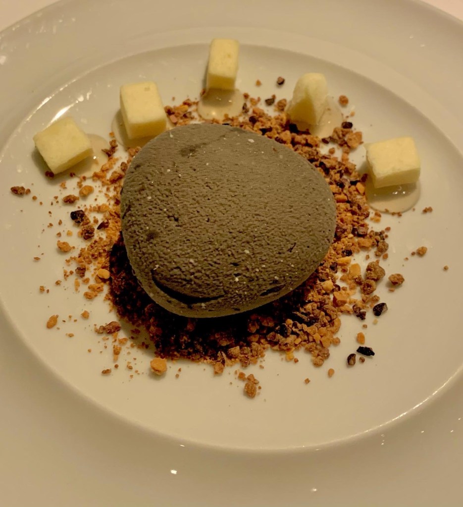 3) chocolate mousse rock with pineapple-infused marshmallows and verbena