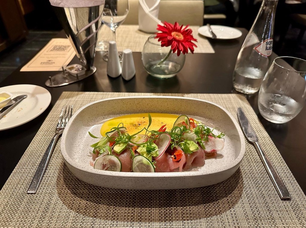Club Social Miradlores, Lima, Peru tuna tiradito with passion fruit and ginger infusion, avocado, crispy quinoa, radish, and kiuri (Japanese cucumber) grilled tuna with shrimp-stuffed gyoza and bok choy Share this: Click to share on X (Opens in new window) X Click to share on Facebook (Opens in new window) Facebook Like Loading...