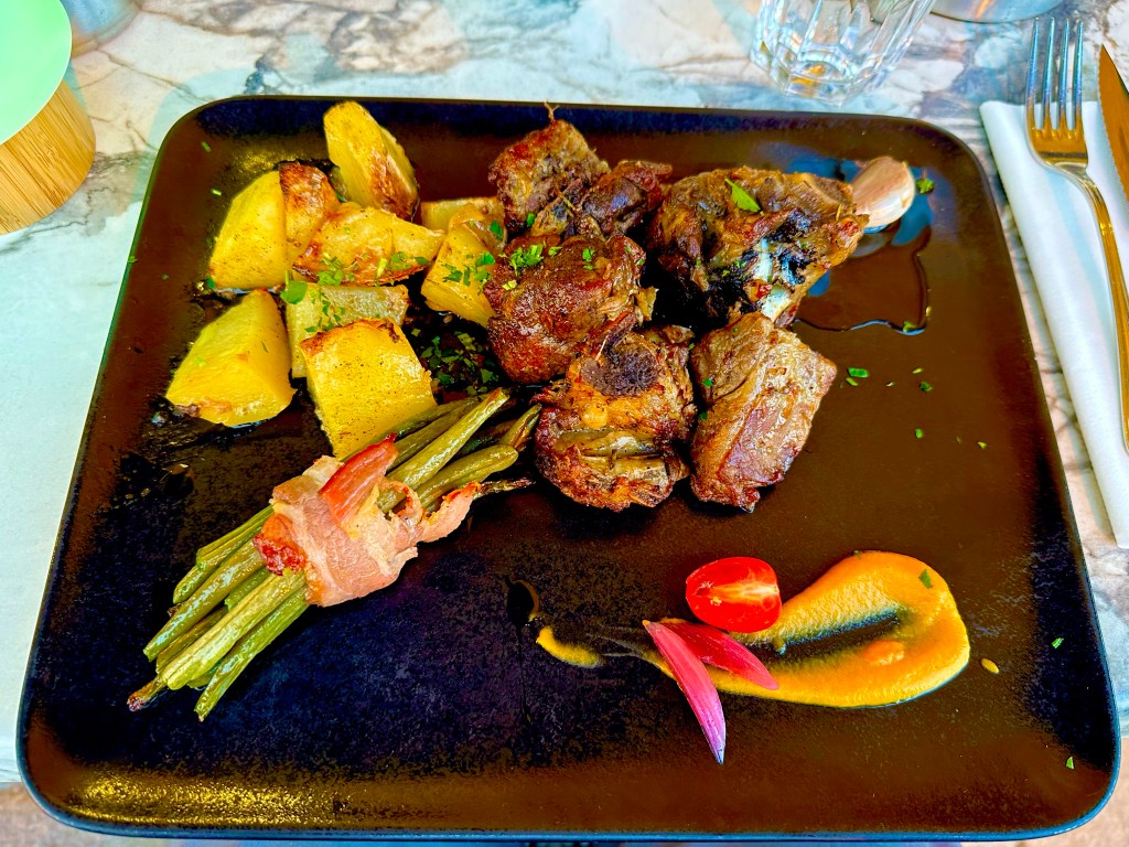 La Transat Resto, Port of Calvi, Corsica, France Milk-fed Corsican lamb with roasted potatoes and green beans Linguine with wild-caught shrimp Share this: Click to share on X (Opens in new window) X Click to share on Facebook (Opens in new window) Facebook Like Loading...