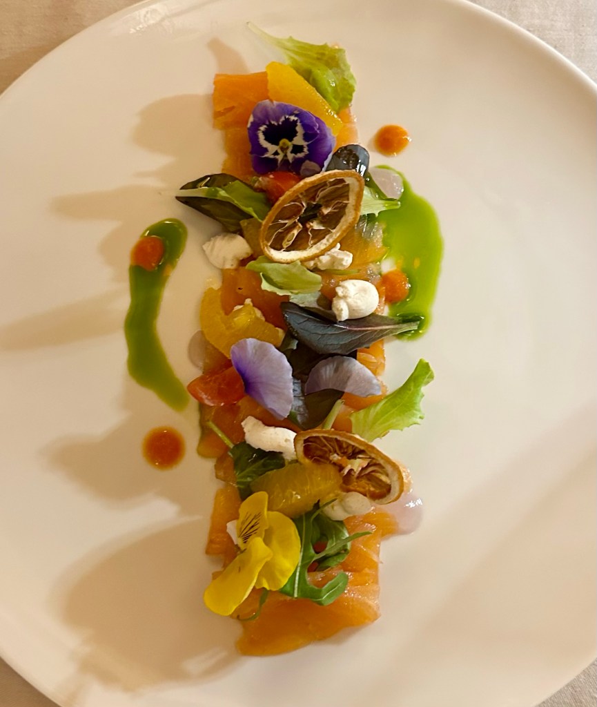 Hotel Parco degli Ulivi restaurant, Arzachena, northern Sardinia, Italy Salmon with ricotta and orange Spaghettoni with saffron and clams Share this: Share on X (Opens in new window) X Share on Facebook (Opens in new window) Facebook Like Loading...
