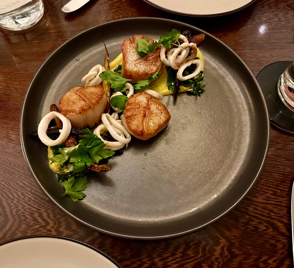 Fork Restaurant, Philadelphia chilled corn soup with poblano and watermelon black bass crudo with cherries and green coriander melon with sumac ricotta sea scallop and squid with roasted carrot, tahini, and oat tabbouleh lemon curd with blueberry, dill, and buckwheat Share this: Click to share on X (Opens in new window) X Click to share on Facebook (Opens in new window) Facebook Like Loading...