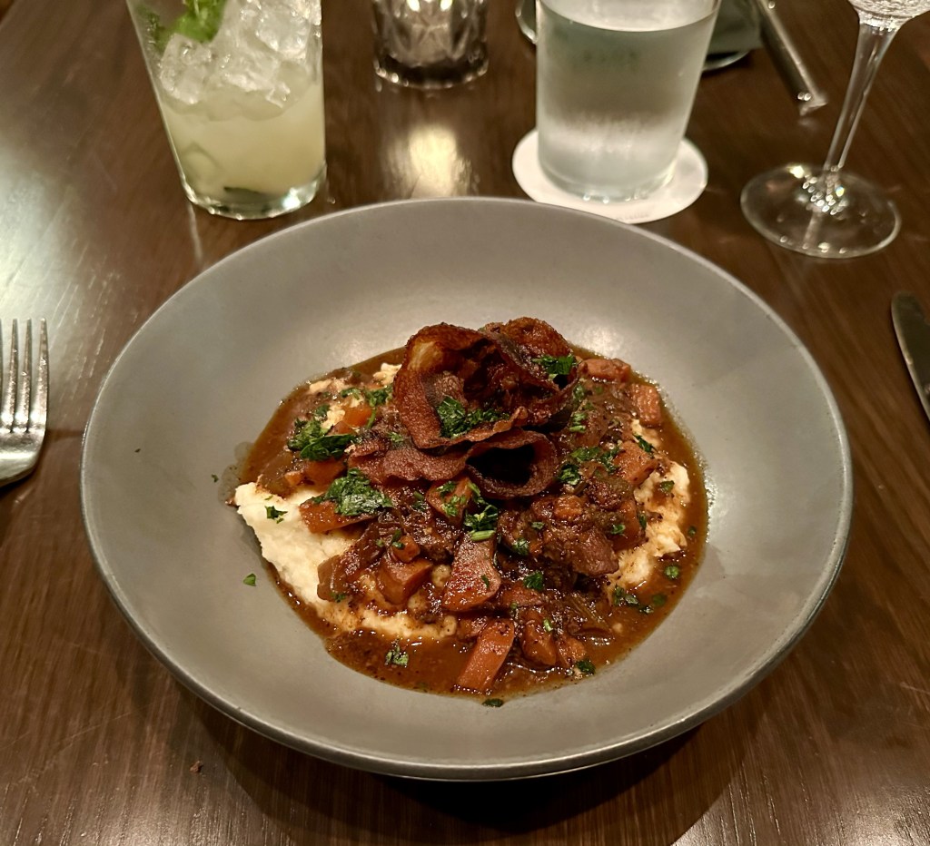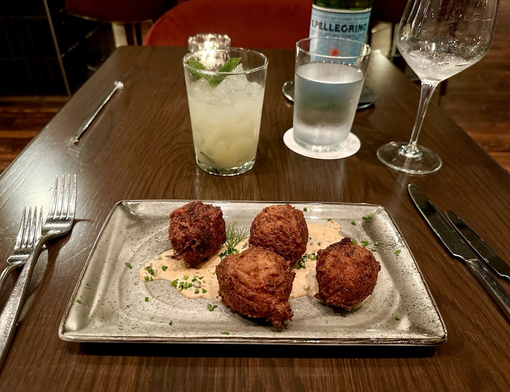 Revivalist Restaurant at 106 Jefferson Hotel, downtown Huntsville, Alabama crab and shrimp hush puppies braised pork cheek and crispy jowl with horseradish mashed potatoes and gremolata Share this: Share on X (Opens in new window) X Share on Facebook (Opens in new window) Facebook Like Loading...