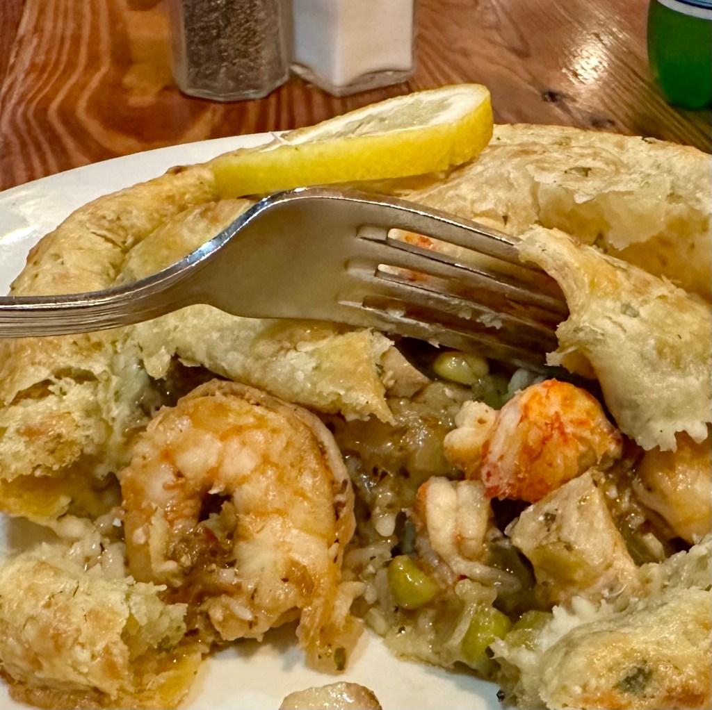 Bouré Restaurant, Oxford, Mississippi Crawfish and shrimp pot pie with andouille sausage, chicken, “the Cajun trinity,” and dirty rice in a parmesan herb crust Share this: Click to share on X (Opens in new window) X Click to share on Facebook (Opens in new window) Facebook Like Loading...