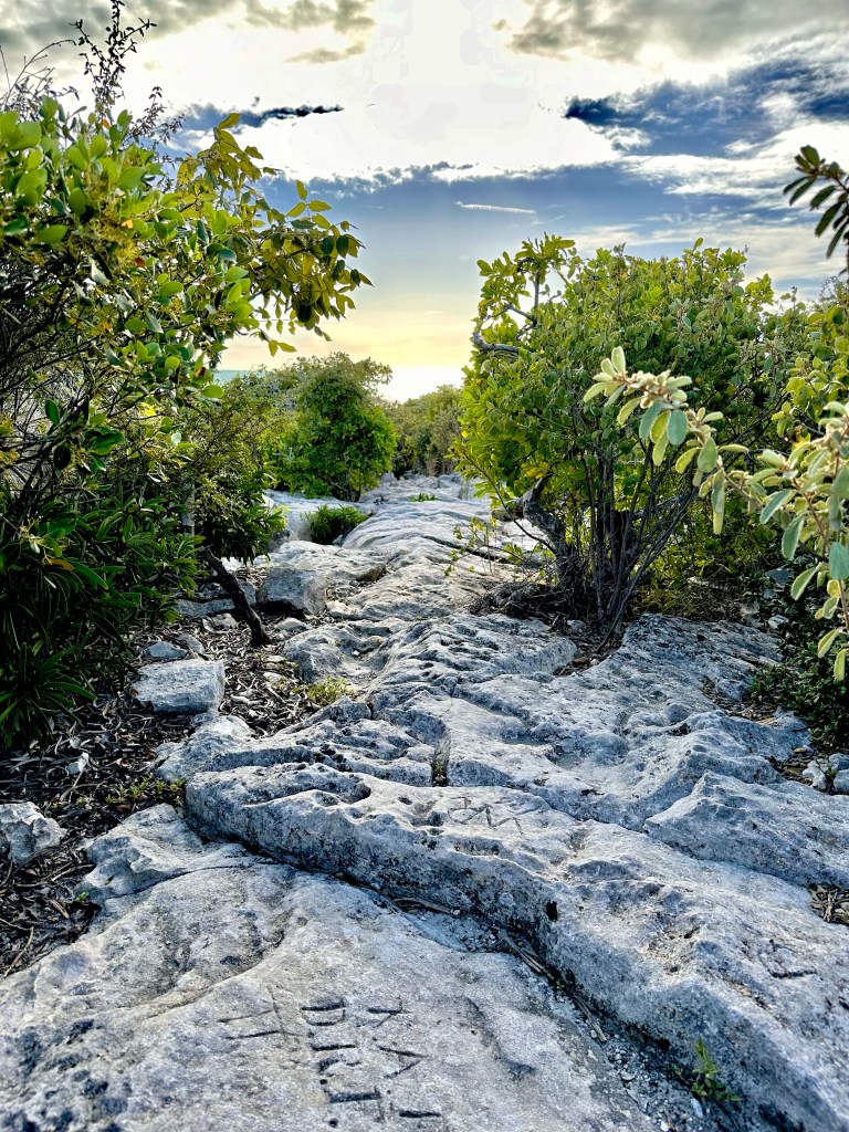 Sapodilla Hill Historic Site. Overlooking Sapodilla Bay and Chalk Sound in the south of Providenciales, Turks & Caicos, this hill contains numerous rock inscriptions from travelers, pirates, and shipwrecked sailors from the 18th and 19th centuries. The carvings include names, dates, symbols, and descriptions of ships.
