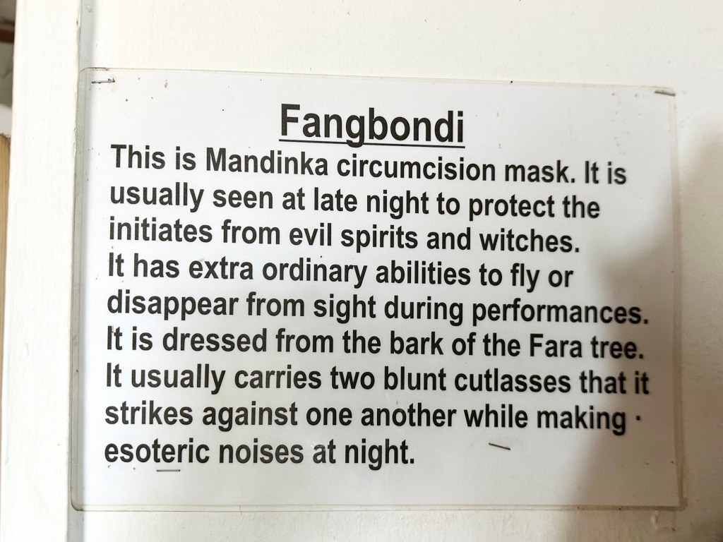 Kachikally Crocodile Pool Museum, Bakau, The Gambia. The small museum at the Crocodile Pool features interesting exhibits on (among other things) fertility rituals, circumcision rituals (both male and female), masks, amulets, traditional musical instruments, and the participation of Gambians in WWII.