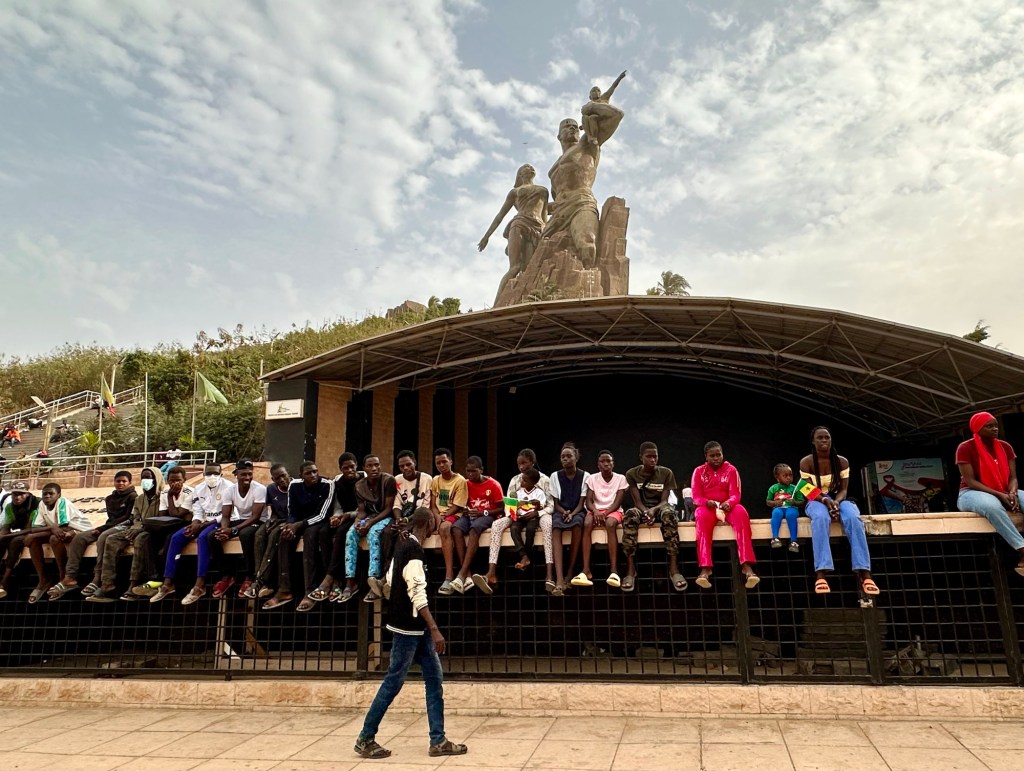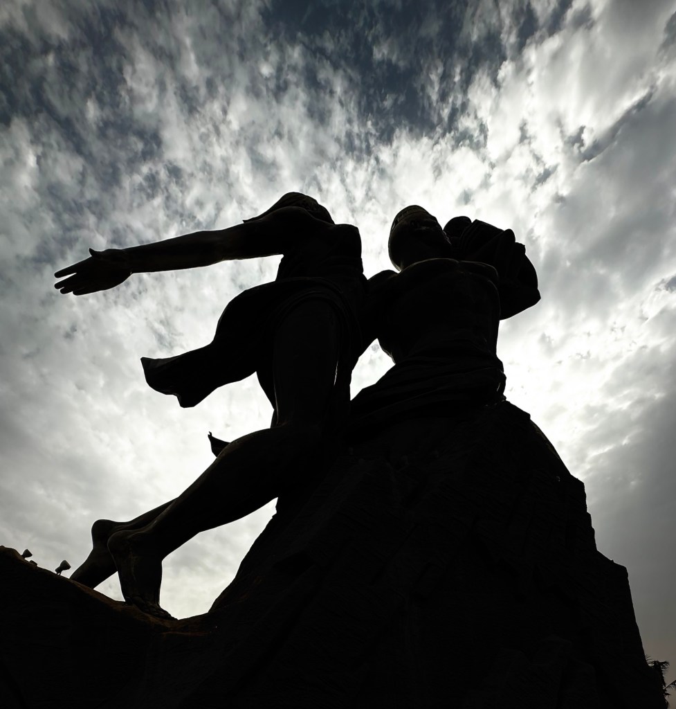 This massive monument was controversial for its cost, size, and depiction of semi-nudity. It was built in 2010 by a North Korean company.