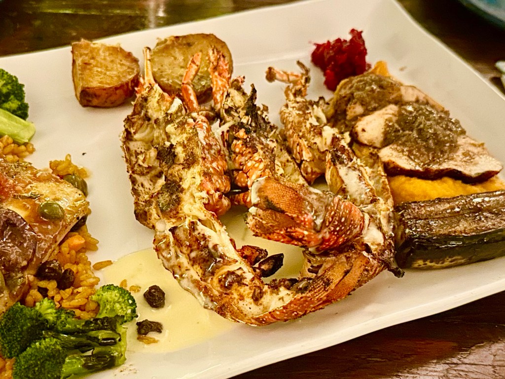 Blanchard’s Restaurant, Anguilla. Somehow, I snagged the best table right by the sand. Caribbean sampler with grilled Anguillan crayfish, jerk chicken, and seabass “cracked coconut” (chocolate shell with coconut sorbet) dinner view Share this: Click to share on X (Opens in new window) X Click to share on Facebook (Opens in new window) Facebook Like Loading...