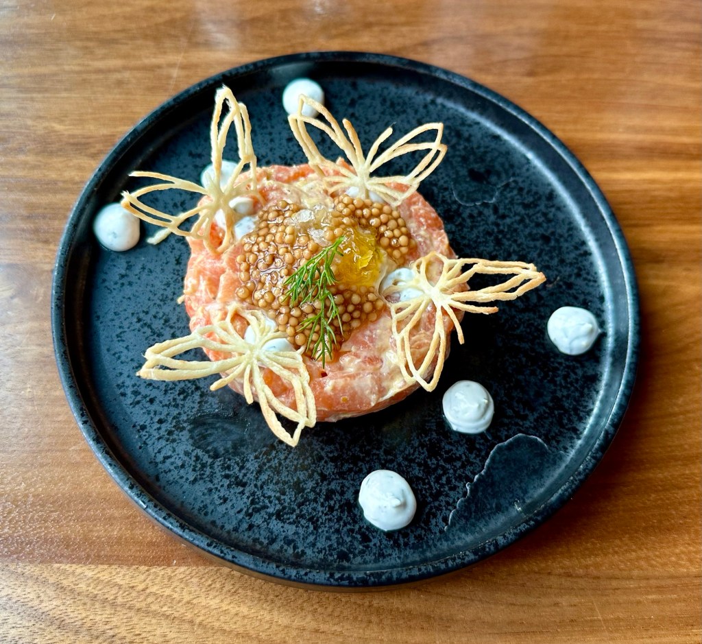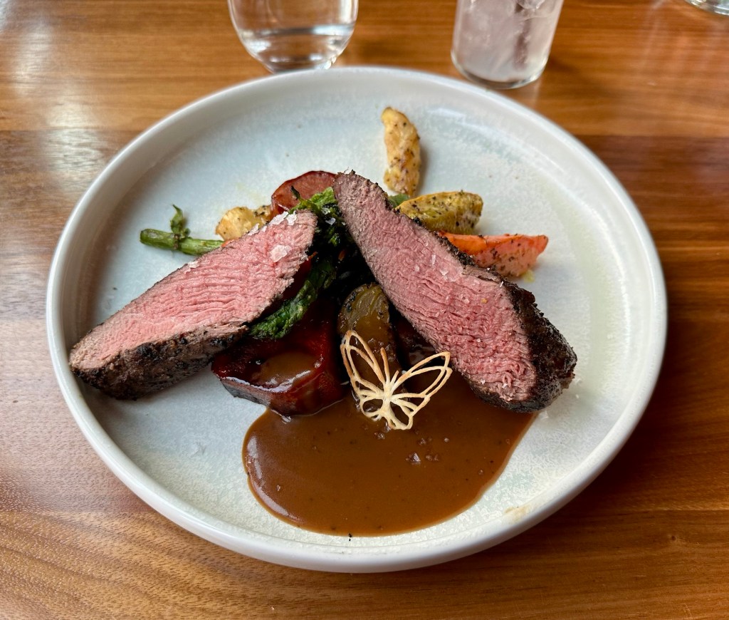 Aalto, Pyramid Lake, Jasper National Park, Alberta, Canada Steelhead Tartare, Spruce Tips, Dill Crème Fraîche, Honeycomb, Pickled Mustard Bison Petit Tenderloin, Brown Butter Fondant Potato, Robson Farms Vegetables, Bordelaise Sauce Flourless Chocolate Cake, Raspberry Mousse, Hibiscus Syrup Share this: Share on X (Opens in new window) X Share on Facebook (Opens in new window) Facebook Like Loading...